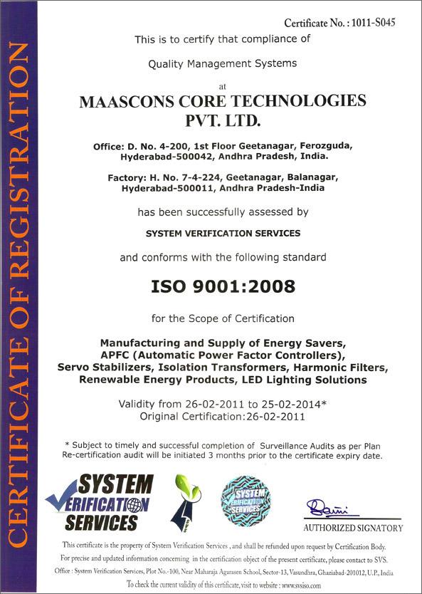 Maascons Power Savers (MPS) . Automatic Power Factor Controller Panel . Servo Controller Voltage Stabilizers . Product RangeM